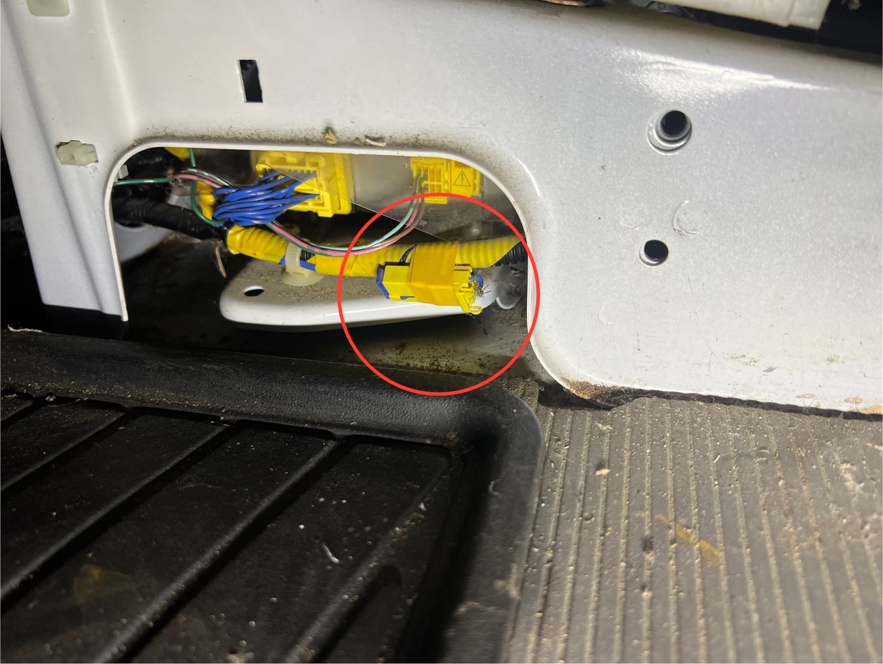ビニールテープで固定してある赤丸がエアバックのコネクタになります。