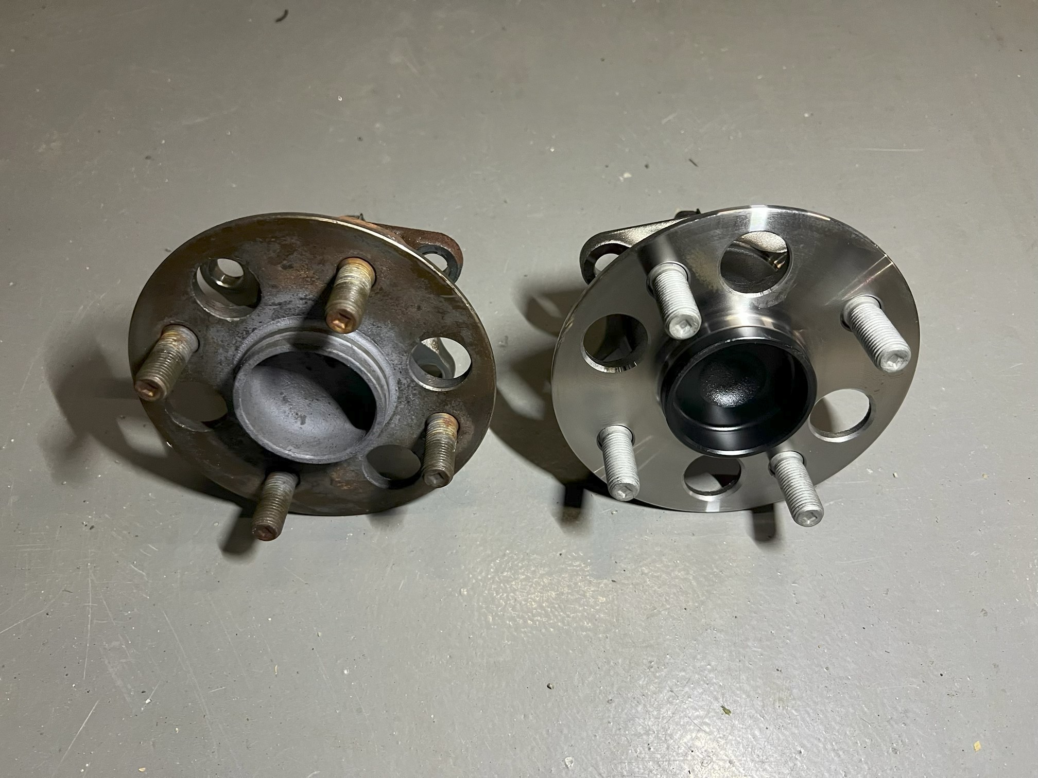左が取り外したハブベアリングで右が新品のハブベアリングになります。